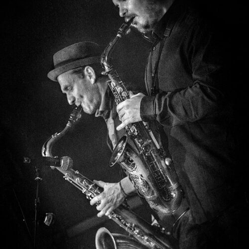 Plan anzeigenBaptiste Herbin et Michael Cheret sont amis sur scène et dans la vie depuis plus de 20 ans. Cette totale complicité les a amenés à concrétiser en musique leur capacité à mélanger leur son de saxophone dans un discours entremêlé, qui prend sa source dans leur passion commune pour le jazz west coast, rappelant Gerry Mulligan avec Chet Baker, Stan Getz ou encore Art Pepper ou Paul Desmond, dont tous deux maitrisent le langage poétique et swinguant. Les deux saxophonistes ont créé un groupe sans piano ni guitare, ou les saxophones évoquent le sens harmonique des morceaux par un chant tout en contrepoint. Le répertoire est constitué de reprises de compositions de Mulligan, et de compositions originales de Michael et Baptiste, dans une recherche d’esthétique cool jazz, sophistiquée et romantique. Pour les accompagner une rythmique ultra swing et dans une maitrise totale du son d’ensemble : Patrick Maradan à la contrebasse & Philippe Maniez à la batterie.